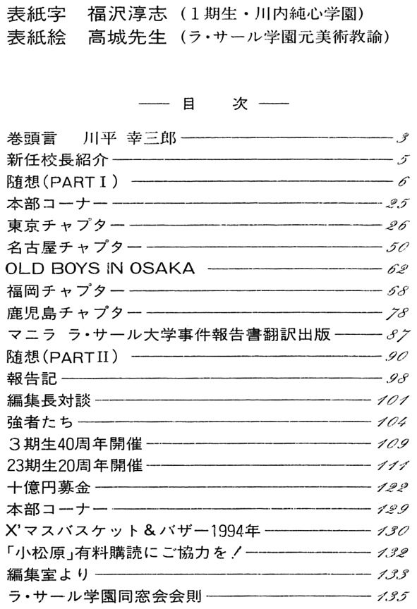 平成29年4月1日より、同窓会ホームページに小松原創刊号から最新号迄の目次を掲載致しております。
